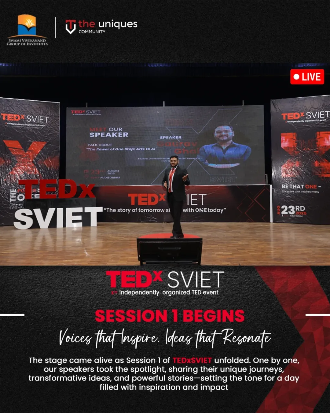 TEDx SVIET 2025, under the theme “The Power of One”, featured thoughtful talks, ideas worth spreading, and engaging conversations aimed at inspiring students and attendees to make a difference — one idea at a time.